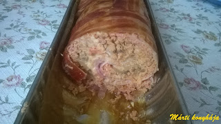 Gombás, sajtos töltött fasírt, baconbe tekerve